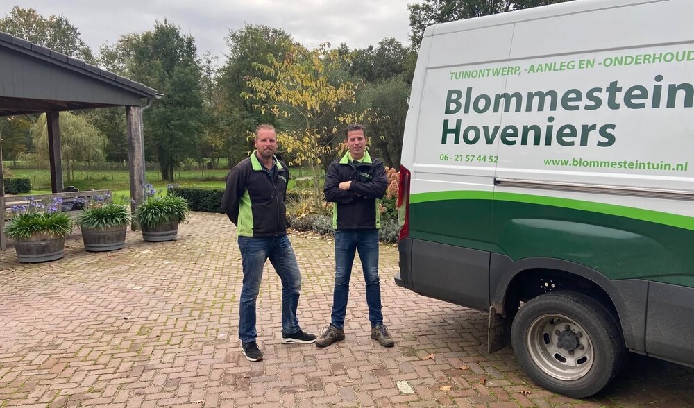 In 2010 hebben wij samen het hovenierbedrijf overgenomen en tot op de dag van vandaag onder de naam Blommestein Hoveniers doorgezet. We hadden ervoor al samen de middelbare tuinbouwschool afgerond, we kennen elkaar door en door. Iets wat de samenwerking zeer zeker bevordert. We werken in een gezellig team met vakbekwame werknemers die elkaar op verschillende vlakken aanvullen.